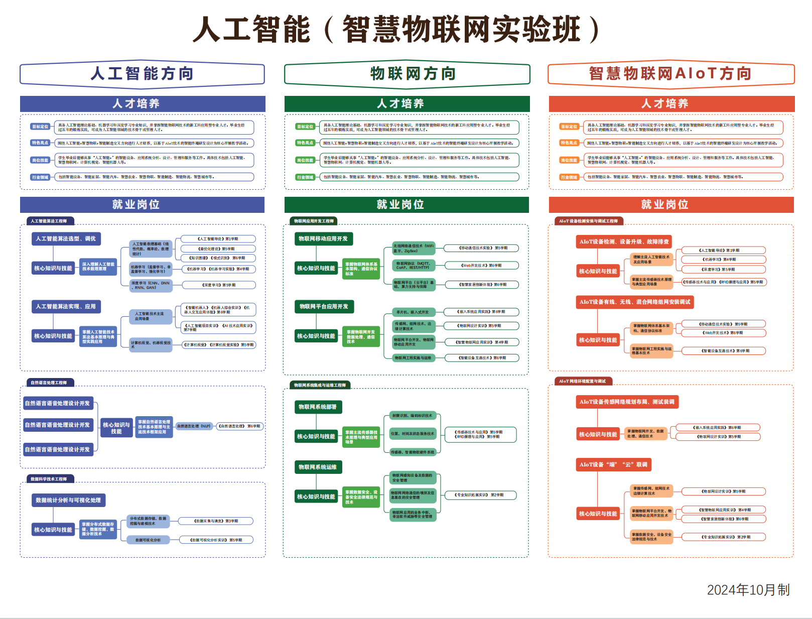 人工智能智慧物联网班管理团队通过走访多家企业与学校,与行业专家和学业导师经过多次交流研讨,历经3个月时间,完成就业岗位与课程体系思维导图的绘制,并对学生进行宣讲介绍。