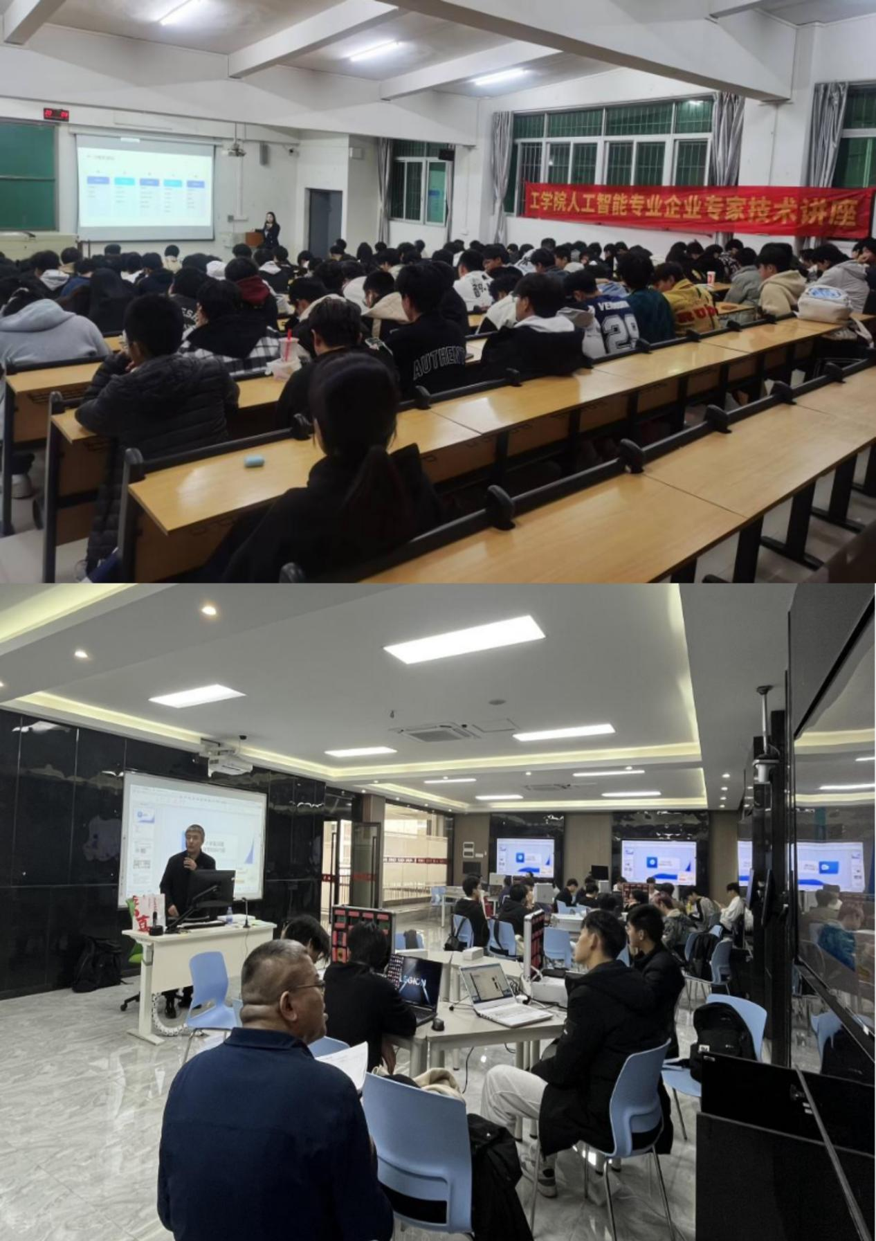 特邀广州知在科技有限公司CEO陈康先教授、广州黑蜂科技有限公司产品总监黄淼总监、小米集团技术委员会专家组李楠、小米集团技术委员会专家组成员袁小庆作为主讲嘉宾,为人工智能专业的教师和学生们提供宝贵的行业前沿知识讲座与培训,也为学生们职业发展和技能提升,提供重要指导和启发。