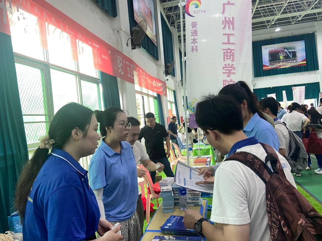 当天上午,南春中学艺体馆人声鼎沸,热闹非凡。来自广州市各大高校的招生团队齐聚一堂,每个学校都精心布置了一个招生咨询台,桌子上摆放着整齐的招生宣传资料,上面悬挂着写有学校名称的鲜艳旗帜。在这样一场规模宏大的招生咨询会上,beat365在线体育官网登录入口以其独特的魅力和实力吸引了众多学生和家长的关注。
