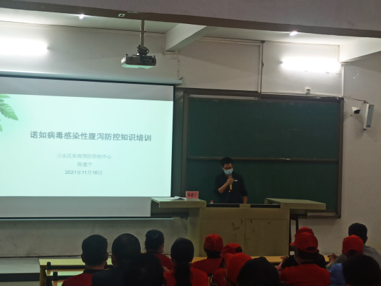 11月16日,后勤处邀请三水区疾控中心陈建千主任来beat365作《诺如病毒感染性腹泻防控》知识培训讲座,三水校区各食堂等餐饮单位200余名食品从业人员参加培训。