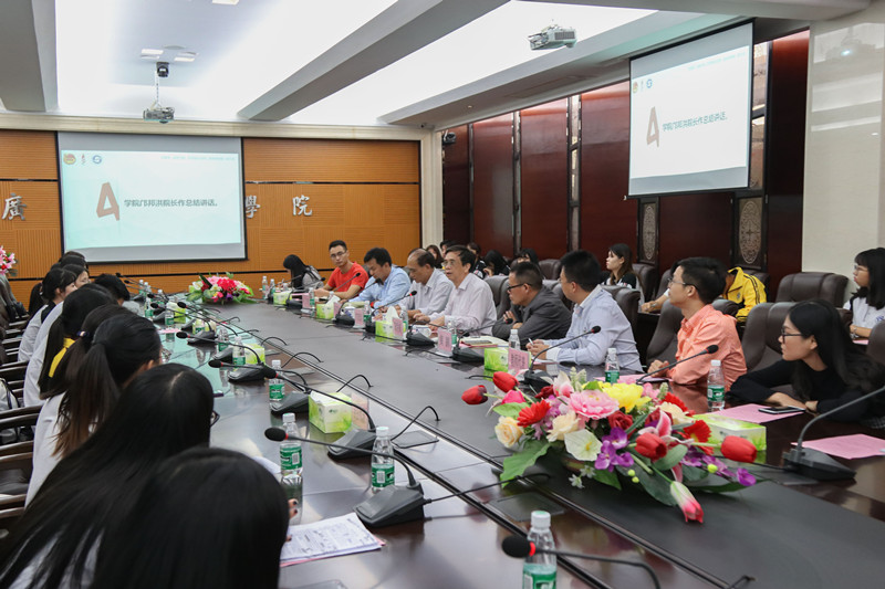 【本网讯】为总结“五进”之“进社会”的各项工作,进一步深化和巩固同学们暑期社会实践的成果,认真做好暑期社会实践总结交流工作、创新工作形式,扩大社会实践活动在广大青年学生中的覆盖面。10月11日,我院于三水校区图书馆6楼学术报告厅举行了 “五进”之“进社会”座谈会。学院院长邝邦洪教授,学院副院长朱特威同志,关工委、三水校区管委会、学院党委、学生处等部门负责人、各院系团支部书记、“三下乡”队伍指导老师以及40位学生代表参加了此次座谈会。座谈会由学院团委洪卫烈书记主持。