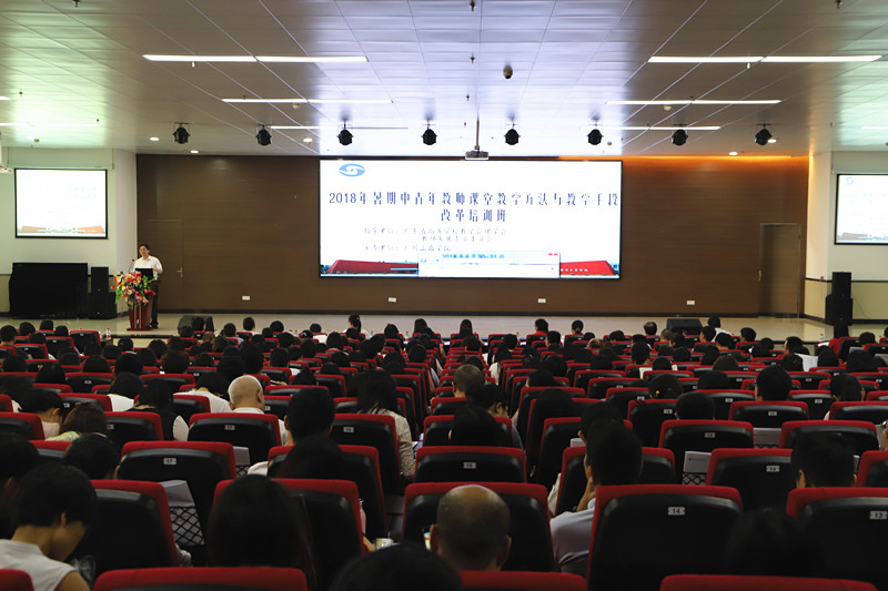 为深入贯彻落实新时代全国高等学校本科教育工作会议精神,加快振兴本科教育,运用信息技术改造传统教学、提高教学水平,学校于8月30-31日在三水校区学生活动中心六楼报告厅举办了2018年暑期中青年教师“课堂教学方法与教学手段改革”培训班。校长邝邦洪教授、副校长乔丽媛教授、相关职能部门和全校530名中青年教师参加培训。本期培训班由广东省高等学校教学管理学会教师发展专业委员会进行指导,学校教务处(教师教学发展中心)、人事处(教师发展中心)联合承办。