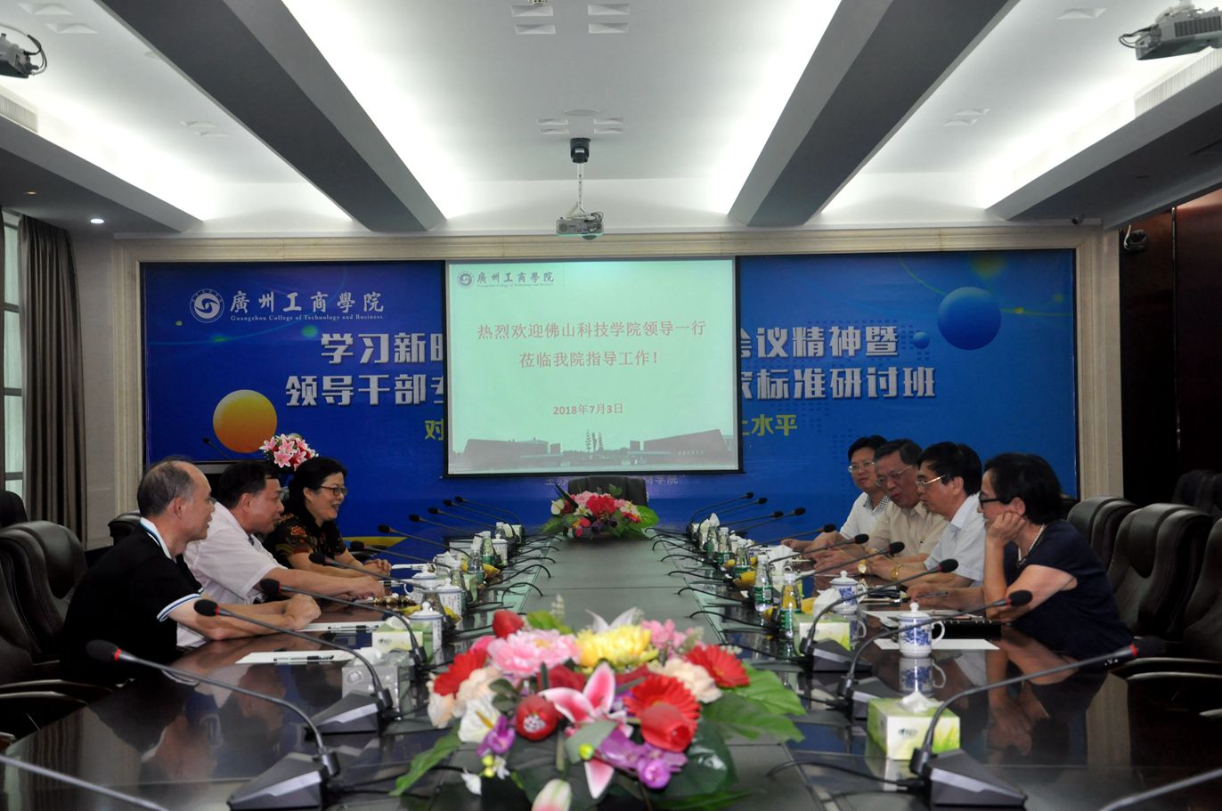 【本网讯】7月3日下午,佛山科学技术学院党委书记曾峥一行四人来我院三水校区考察交流。学院院长邝邦洪、党委书记兼副院长钟伟强、副院长乔丽媛等热情接待了来宾。