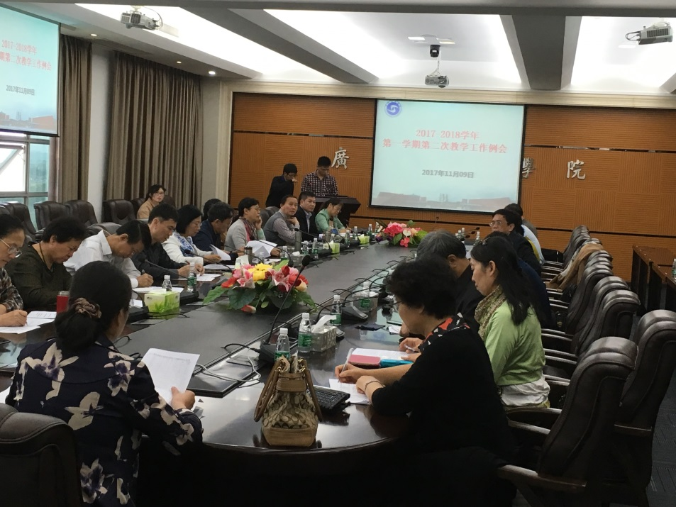 【本网讯】11月9日上午,学院在三水校区图书馆6楼会议室召开2017-2018学年第一学期第二次教学工作例会。邝邦洪院长、乔丽媛副院长、各系部主任、分管教学及实验室建设工作的副主任、国际教育学院分管教学副院长、评估办、教务处、实验实训中心、督导办公室正副职领导出席会议。会议由乔丽媛副院长主持。
