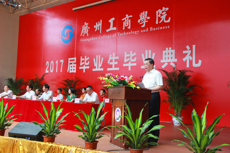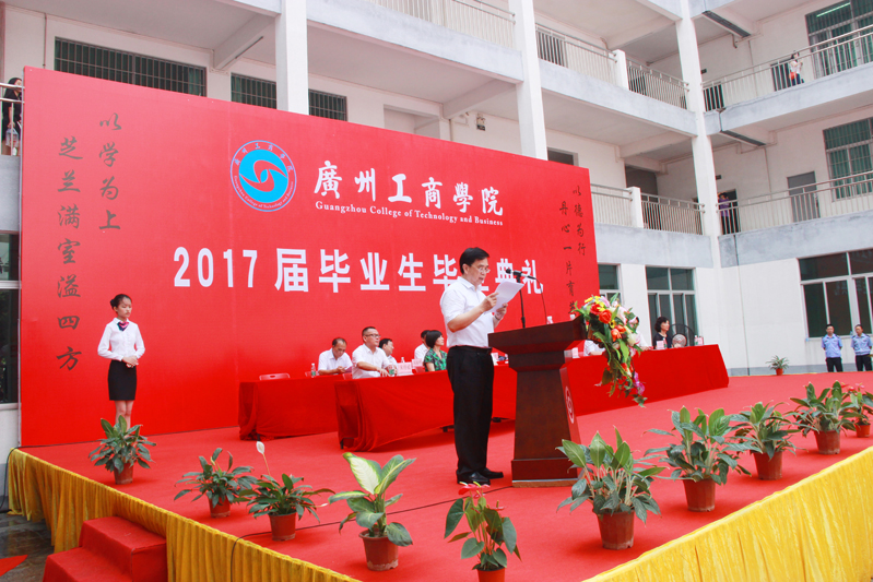 学院院长邝邦洪教授首先发表了热情洋溢的讲话。他代表学院董事会、学院党政领导和广大教职员工向毕业生表示热烈的祝贺!向教育培养这届学生辛勤工作、付出了智慧和心血的全体教职员工表示衷心的感谢!他说,三年里,同学们在老师们的教育培养下,刻苦学习科学文化知识,加强了“德学”修养,积极开展了“进课室、进图书馆、进实验实训室、进体育场馆、进社会”的“五进”活动,在德、智、体、美等方面,都获得了丰收,有700多名同学在全国、省、市、区级各类竞赛中获奖,其中获全国性奖72项,省级奖151项,市、区级奖32项,为学院赢得了荣誉。邝院长对同学们的每一次成长和进步,所取得的每一份成绩,都感到极大的欣慰;同时也对同学们的前途和未来充满了信心!同学们正身处中国历史上最好的发展时期,正经历着中国历史上最广泛最深刻的社会变革。机会与风险、竞争与挑战扑面而来,无处不在。他向大家提出了三点希望:第一,牢记习近平总书记的教导“人的一生只有一次青春。现在,青春是用来奋斗的,将来,青春是用来回忆的。”,要树立理想,勇敢地面对现实,脚踏实地,从基层做起。第二,牢固树立终身学习的理念,不断用新的知识和技能充实提高自己,提升自身的生存能力和竞争能力。第三,在人生的道路上,经受考验,自强不息,将“以德为行 以学为上”作为一生的承诺,一生的实践,一生的追求,走好人生路,写好自己人生美好的诗篇!邝院长语重心长的谆谆教导赢得了全场热烈的掌声。