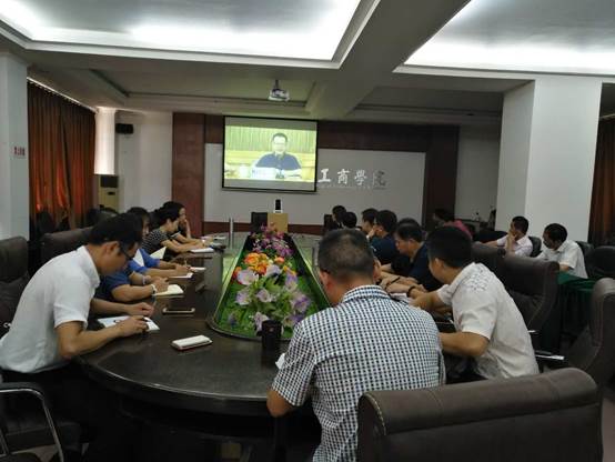 【本网讯】8月31日上午10:30,我院组织后勤服务公司负责人、两校区食堂经理和食品安全管理员、商业街、美食城负责人在花都校区101会议室参加了由广东省教育厅组织召开的全省学校秋季开学食堂食品安全工作视频会议。学院副院长朱特威出席本次视频会议。