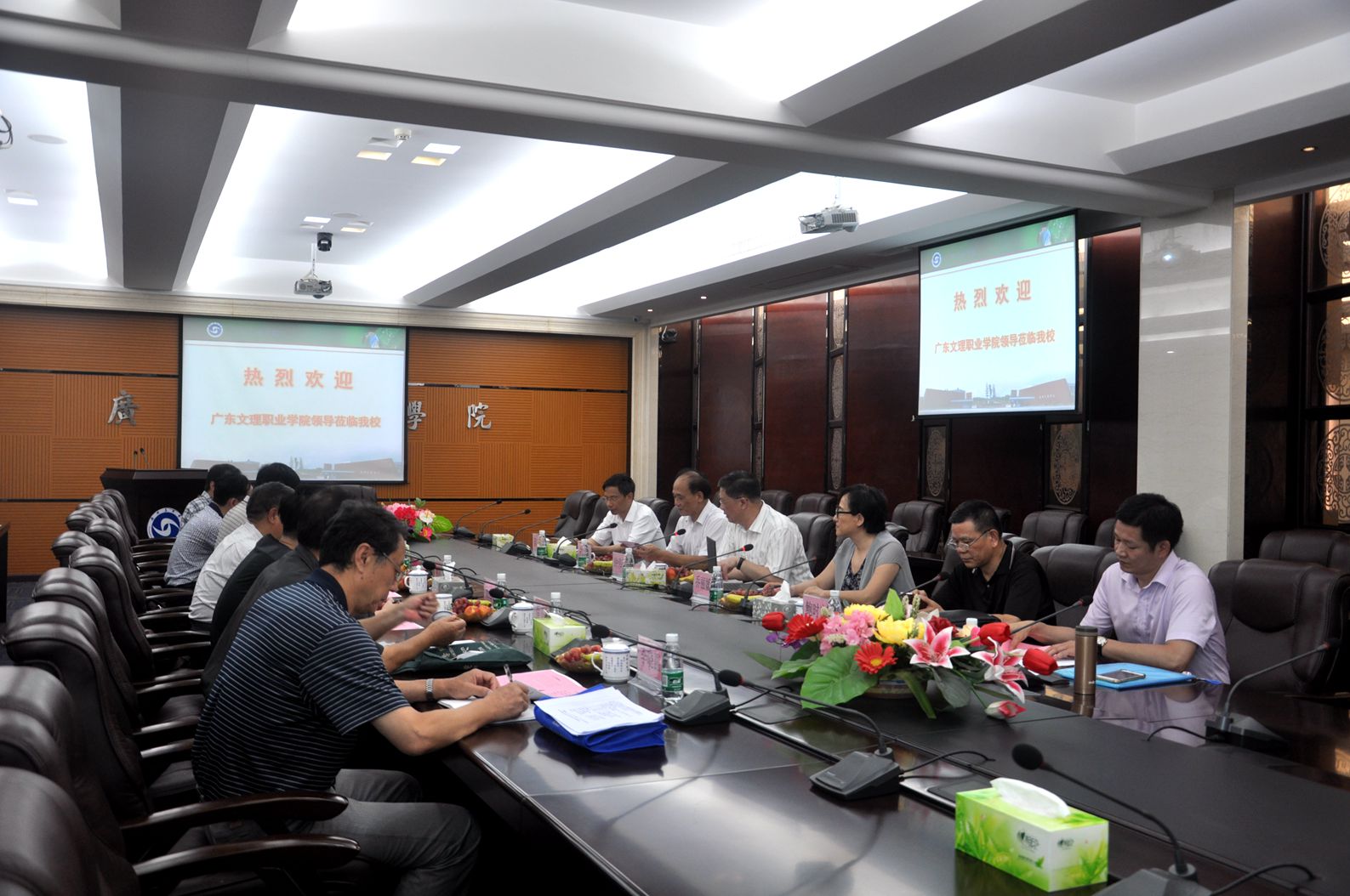 【本网讯】6月6日上午,广东文理职业学院党委书记颜大胜、学院常务副院长李润、学院董事宣恩强等一行来访我院。学院党委书记兼副院长钟伟强、学院副院长乔丽媛等热情接待了来宾。