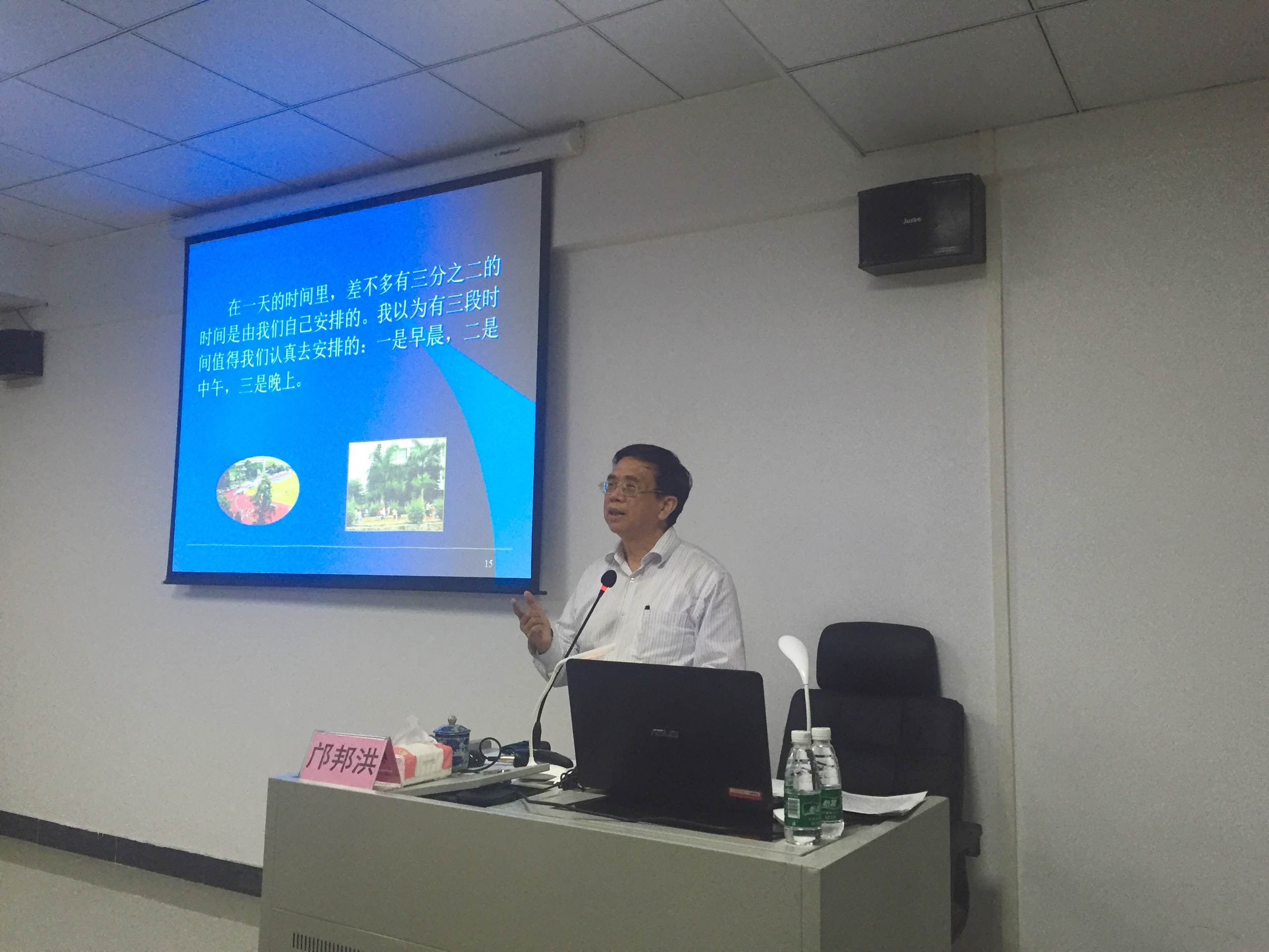 【本网讯】11月21日晚上,学院院长邝邦洪教授在三水校区国际教育学院楼906课室为国际教育学院全体新生举行了专题讲座。本次讲座的题目为:珍惜时间,刻苦学习——与青年学生谈大学生活。国际教育学院全体师生聆听了讲座,讲座由国际教育学院副院长黄喆诚主持。