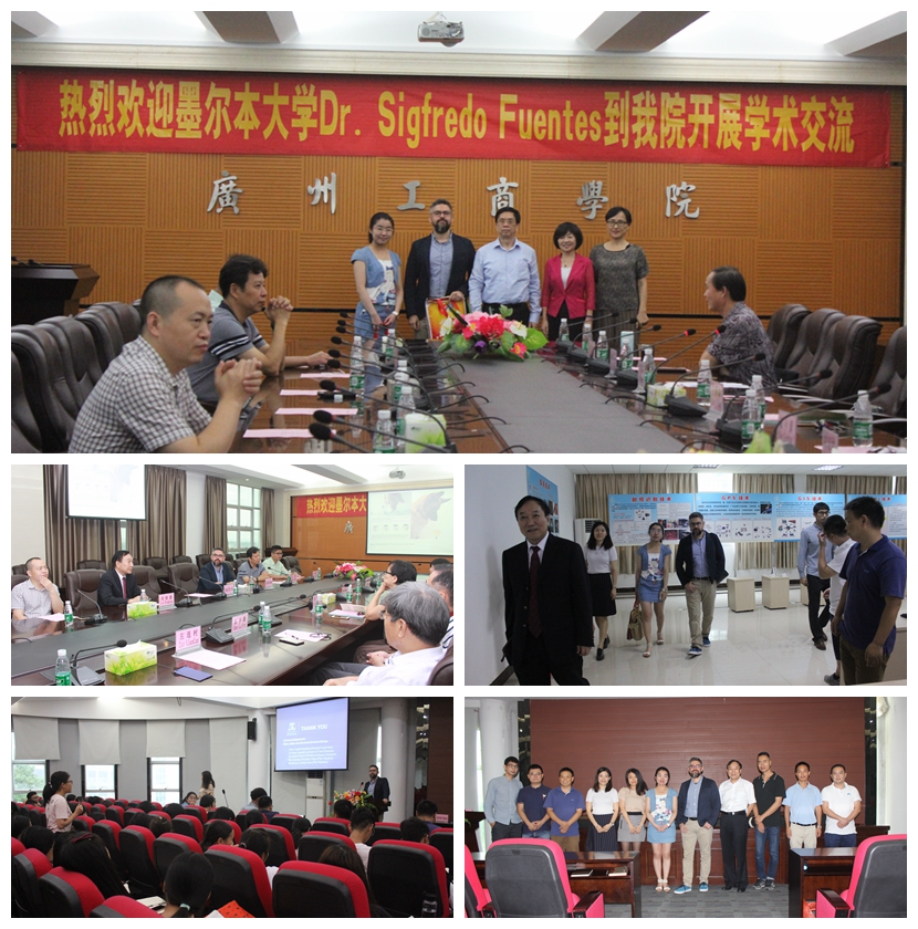 【本网讯】10月24日,墨尔本大学Dr.Sigfredo Fuentes(博导、国家级项目主持人、首席科学家)到我院开展学术交流活动。当天上午,学院在三水校区图书馆六楼会议室举行了交流会议,Dr. Sigfredo Fuentes专家,广州拜尔冷链聚氨酯有限公司(广州拜尔空港冷链物流中心)董事长王宏等企业代表,学院院长邝邦洪,副院长乔丽媛、易露霞,科研处处长陈小康,督导办主任赵复查,物流系左连村、刘炳康及部分专任教师出席了交流会议。会议由易露霞副院长主持。交流会议后Dr.Sigfredo Fuentes一行参观物流实训基地,下午在行政楼三楼报告厅为物流系食品科学专业本科学生作了专题讲座。