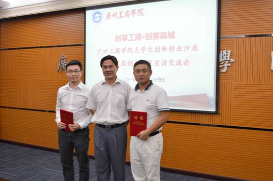 学院副院长吴宏岳为三水高新创业中心总经理胡晓华、总经理助理王星颁发了我院大学生创业导师聘书。