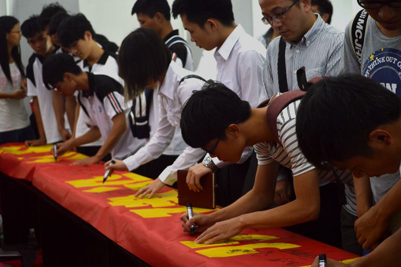 会议结束后,师生代表在“三风建设活动,从我做起”的横幅上签名,表达了积极参与“三风”建设,创建优良校风、教风和学风的决心。