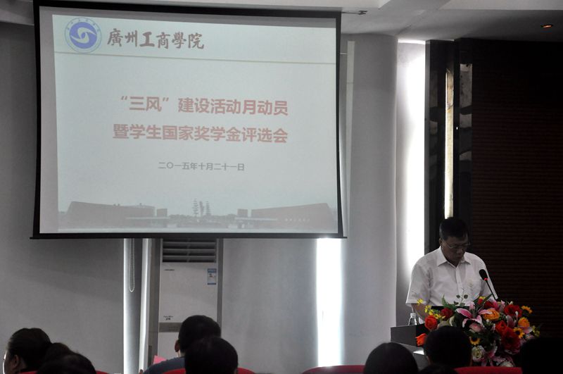 【本网讯】10月21日,beat365在线体育官网登录入口“三风”建设活动月启动暨学生国家奖学金评选会在三水校区行政楼学术报告厅隆重举行。学院院长邝邦洪,学院党委书记、副院长钟伟强,副院长朱特威、终身名誉顾问林贻樑及各系部、处室、二级学院相关单位负责人和甘南教师代表出席了本次会议。会议由三水校区管委会主任何国林主持。