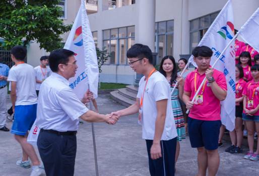 最后,院长邝邦洪对参加2015年暑期“三下乡”活动的4支院级重点队伍进行授旗并预祝同学们凯旋。授旗仪式圆满结束,四面旗帜飘扬舞动,宣告着2015年度暑期“三下乡”活动正式启动。
