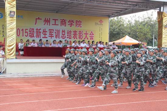 [本网讯]9月19日,学院分别在花都校区和三水校区举行2015级新生军训总结大会,2015级全体新生精神抖擞迎接领导、教官的检验。学院党委书记兼副院长钟伟强、副院长吴宏岳、喻勋良、朱特威及系部、处室相关单位负责人出席了本次大会。大会由学院军训领导小组办公室负责人主持。
