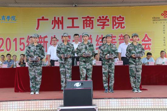 学院副院长朱特威宣读表彰军训先进集体和先进个人的通知。学院领导向在军训中成绩突出的优秀集体与个人颁奖,希望他们继续发扬不怕苦不怕累的精神。颁奖仪式后,军训新生代表发言。他们自豪地谈了这军训12天来所付出的汗水和收获,并表示今后继续发扬这种不怕苦不怕累的精神和做好先锋模范作用,为学院增添新的活力。