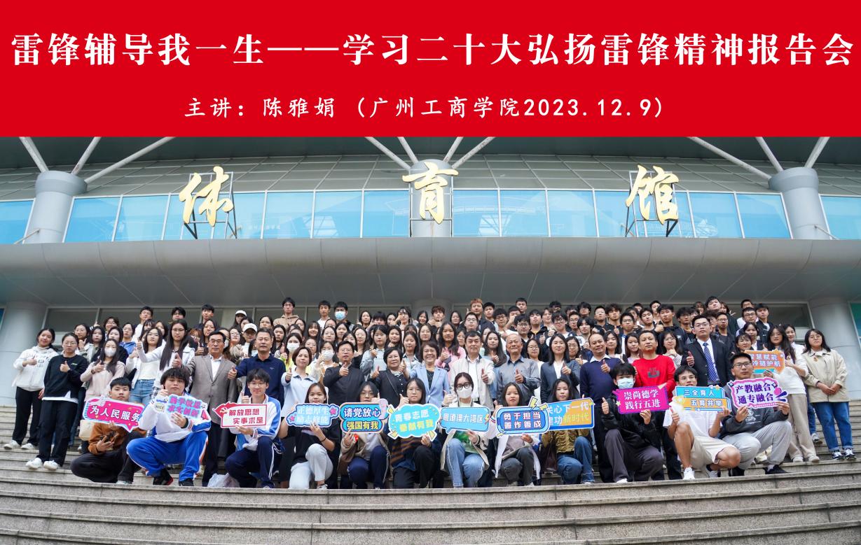 【本网讯】今年是毛泽东等老一辈革命家为雷锋同志题词60周年。2023年12月9日下午,“雷锋辅导我一生”——学习党的二十大弘扬延安精神和雷锋精神报告会在beat365在线体育官网登录入口花都校区举行,省、市、区和学校师生代表近300人参加了报告会。这是学校学习贯彻习近平新时代中国特色社会主义思想主题教育的重要活动之一。