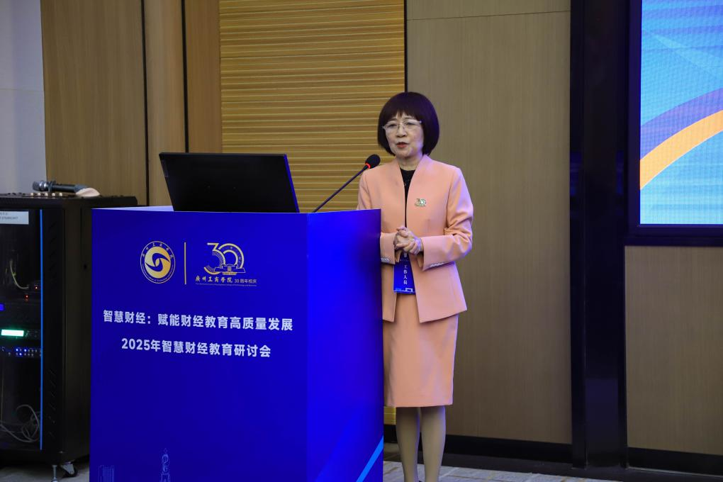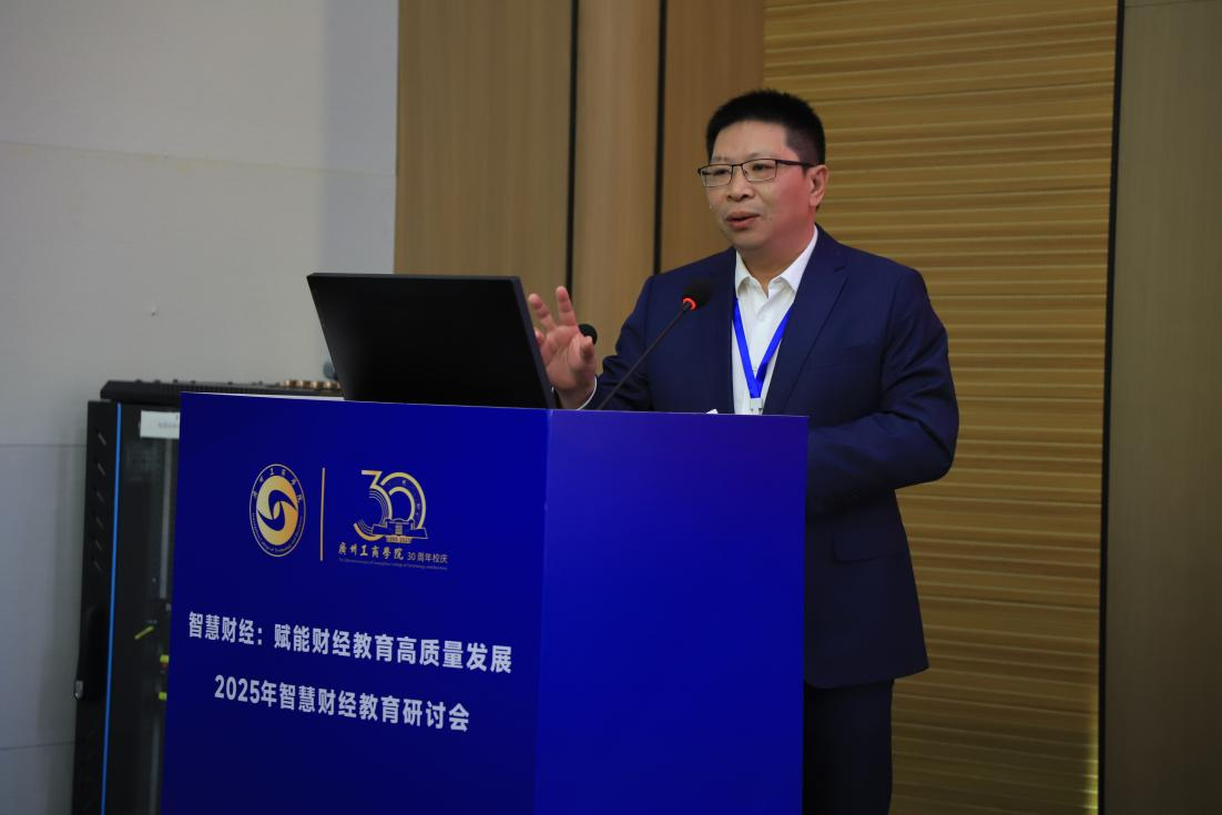 专业委员会理事长、广东财经大学校长于海峰教授在致辞中指出,数智浪潮正深刻重塑财经生态与教育内涵,推动高等财经教育提质增效与内涵式发展已成为必须承担的时代使命。他呼吁各院校应主动建构新教育范式,推动AI素养成为财经人才必修课,打造场景驱动的“活”课程,并重塑“教师-AI-学生”三元协同的新教学关系。