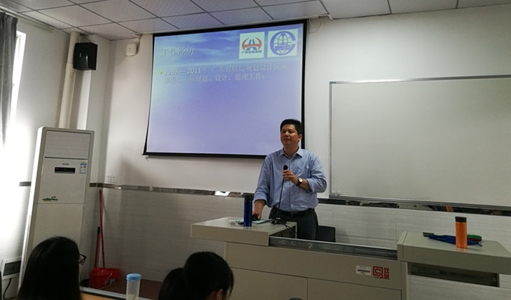 【本网讯】12月6日,中铁二院(广东)港航勘察设计有限责任公司副总经理林荣旺莅临我院,为15级商务英语本科生讲学,提升同学们对国际市场营销环境的理解。