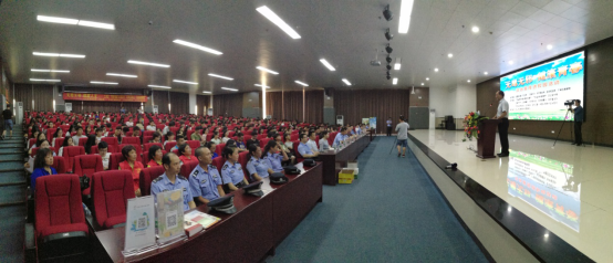 三水校区管委会何国林主任为活动致辞。会上,播放了新型毒品和合成毒品以及毒品危害的宣传片,并由一位特殊的嘉宾——曾经的一名医生,也是一名成功的“创客”,给大家带来现身说法。这位嘉宾在事业风生水起的时候不慎染上毒瘾,他通过自己堕落深渊的真实经历,告戒同学们要远高毒品,珍爱生命。随后,广东省法制教育所的张敏清警官通过“炼就火眼金睛,守护无邪青春”的视频,为师生介绍了2001年北京事件所造成的惨痛代价;中国人民银行三水支许林欣为师生讲授了如何安全使用银行卡,防范电信网络诈骗;三水区公安分局刑侦大队反诈专班星玉春队长则向师生展示了一组关于校园电信诈骗的数据,并且现场教授大家如何防诈、诈骗。