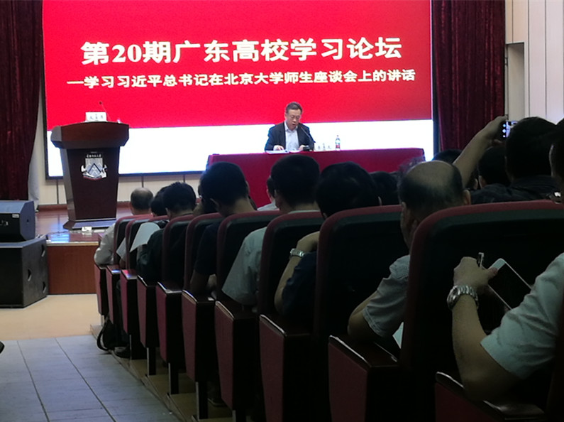 【本网讯】2018年5月11日,省教育工委在华南师范大学举办第20期广东高校学习论坛,学习习近平总书记在北大师生座谈会上的重要讲话精神。省委教育工委书记、省教育厅党组书记、省教育厅厅长景李虎主持会议并发表重要讲话。广州地区高校领导班子成员近300人参加论坛,暨南大学等5所学校党委书记进行了交流发言。