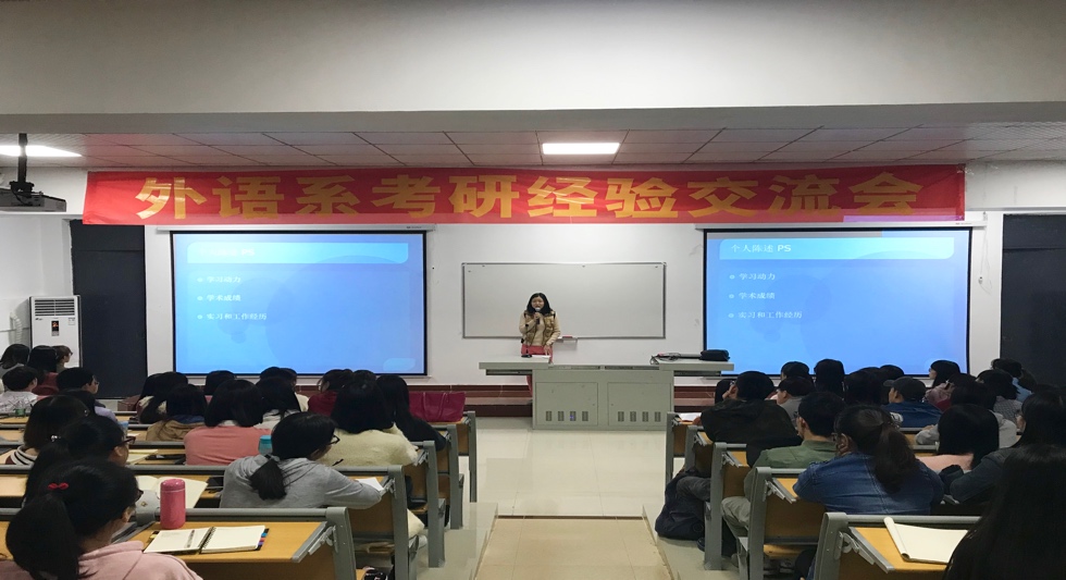 【本网讯】3月22日,外语系考研交流会于教学楼417举行。外语系2015级和2016级的的同学们参加了本次交流会。