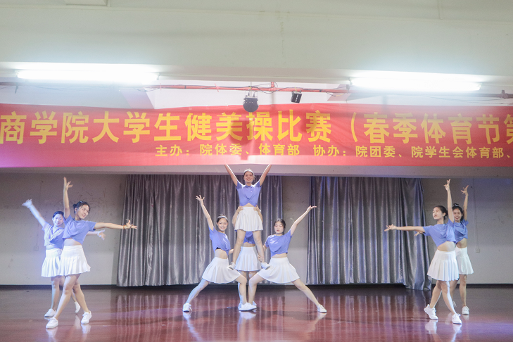 【本网讯】 我院2019年春季体育节(第六场)大学生健美操比赛于4月24日~25日,分别在两校区进行。本次比赛由学院体育工作委员会和体育部主办,共青团beat365在线体育官网登录入口委员会协办。出席本次赛事的嘉宾有学院体育部主任刘嘉丽教授,体育部非球类教研室主任林伟光副教授,体育部球类教研室主任陈强老师,体育部体质测试中心赖荣亮老师,以及本次比赛的裁判长钟丽等有关老师。