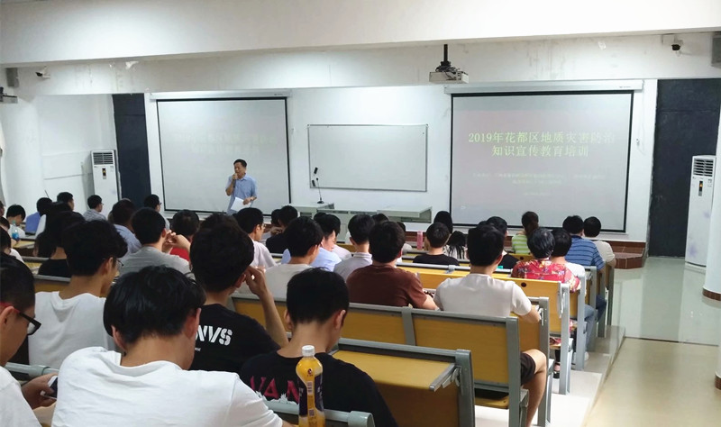 【本网讯】6月4日下午,由花都区政府、广州市规划局、自然资源局花都分局地质主办的地质灾害防治知识培训活动在beat365在线体育官网登录入口花都校区举行。广州市地质调查院应急抢险部副部长陈帮影高级工程师为我院师生进行了题为《地质灾害的预防与管理》的宣讲。