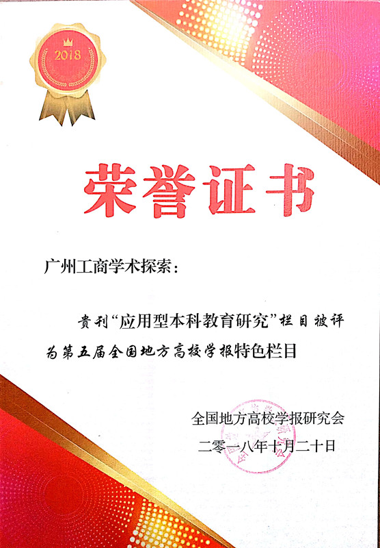 【本网讯】在10月19-22日召开的全国地方高校学报研究会第五届评优活动中,我院《广州工商学术探索》荣获“优秀内部交流期刊名刊”,“应用型本科教育研究”被评为特色栏目,韦承燕获优秀编辑称号。多年来,学院领导、期刊编委会和广大教师结合学校学科优势和特色,为学报踊跃投稿,大力支持学报工作,使论文的学术性、应用性、实践性、特色性更加明显。学报编辑部同仁发扬工匠精神,精益求精,使编辑特色进一步凸显。