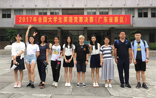 【本网讯】5月14日上午,全国大学生英语竞赛(广东赛区)决赛在广东财经大学举行。在外语系领队教师李澈的带领下,我院黄秋怡、徐家昊、江丽淑等十位同学前往广东财经大学分别参加了B、C、D三个类别的比赛。
