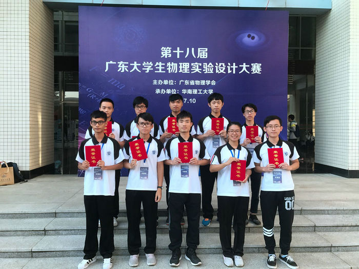 广东大学生物理实验设计大赛是由广东省物理学会主办、广东省各高校承办的一项影响力和竞争力较大的赛事,至今已成功举办了十八届。大赛旨在培养大学生对物理学和物理实验的兴趣,提高学生的创新意识、知识综合运用能力和动手能力。经过激烈的初赛选拨,全省各高校共有62支参赛队伍200多名学生入围决赛,我院电子信息工程系10位同学以优异的初赛成绩进入决赛,并在决赛中发挥出色喜获佳绩。高斯、林国龙、黎锦龙、林锡标、林佳鹏获应用题决赛荣获二等奖,李嘉豪、林俊、黄凯华、梁素梅、钟健武获基础题决赛三等奖。
