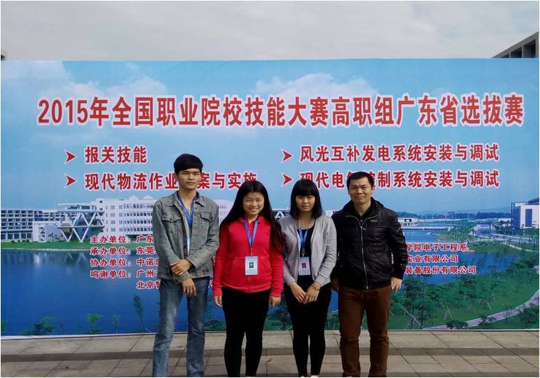 【本网讯】12月25日,圣诞佳节,冬日暖阳。经贸系综合办黄享政主任和国贸专业教师邓志虹一行五人奔赴东莞职业技术学院,参加2015年广东省高等职业院校技能大赛。在报关技能大赛中,经贸系国际贸易实务专业学生以193.5分总成绩获得比赛三等奖。