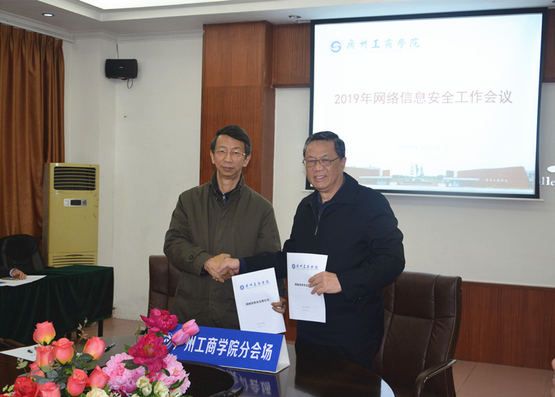 【本网讯】3月8日下午,广东省教育厅召开全省教育网络安全工作视频会议,省教育厅副厅长王创就全省教育网络安全主要任务作出部署安排。我院在花都校区办公楼设立分会场,邝邦洪院长对相关工作作出重要部署,钟伟强书记与学院各部门负责人签署网络信息安全责任书。副院长朱特威、喻勋良、易露霞,董事办主任陆志丹出席。分会场由副院长乔丽媛主持。
