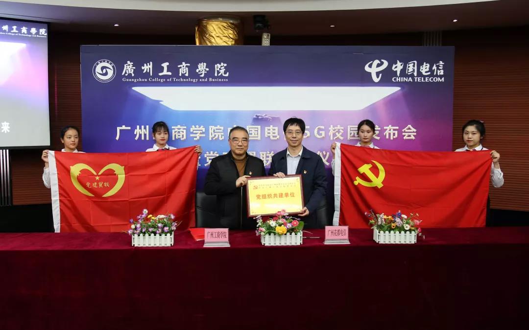【本网讯】当前,5G浪潮席卷全球,人工智能大行其道,中国5G商用牌照正式发放,2019年被业界称为5G商用“元年”,为了推动5G技术与党建、教学、科研和校园管理的深度融合,12月12日下午,beat365在线体育官网登录入口在花都校区举办了5G校园挂牌仪式暨党建翼联签约仪式。学院院长邝邦洪,党委书记张振超,副院长乔丽媛、朱特威、副书记黄鹏;中国电信广州分公司政企部总经理、校园中心总经理沈顺七,花都分公司党委书记、总经理吴焕其,信息化运营中心副总经理甘铭军,广州校园中心副总经理李芹,花都分公司副总经理廖生达出席签约仪式。学院院长邝邦洪与中国电信广州分公司政企部总经理、校园中心总经理沈顺七分别致辞,同时代表双方进行广州地区首家5G校园战略合校高校授牌。学院党委书记张振超与花都分公司党委书记、总经理吴焕其签署了校企党建翼联协议。出席仪式的还有学院中层干部代表以及学院各教工党支部委员。