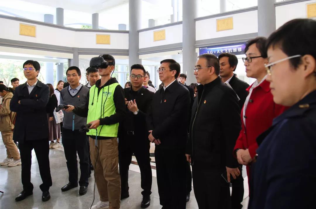 会议还邀请了中国电信广州分公司新兴行业中心总经理、5G应用创新中心总监、广州市人工智能产业发展促进会副会长、大湾区自动驾驶产业联盟副理事长、中国电信集团级专家、省级内训师张红国为学院师生开展了一堂5G技术和应用的公开普及课程,提升大家对5G的了解和熟悉,课程采用5G技术进行线上同步直播,花都校区和三水校区三个会场师生同步分享课程,同时,在教学楼一楼大厅,师生们还参加了5G应用展览及体验,体验项目有5G+智慧工地、智慧警务、智慧党建、AR飞机维修(工业行业)、5G+VR教学(教育)、智慧交通(交通行业)、speedtest、5G终端展会。师生一致表示感受更直观,体验更深刻。