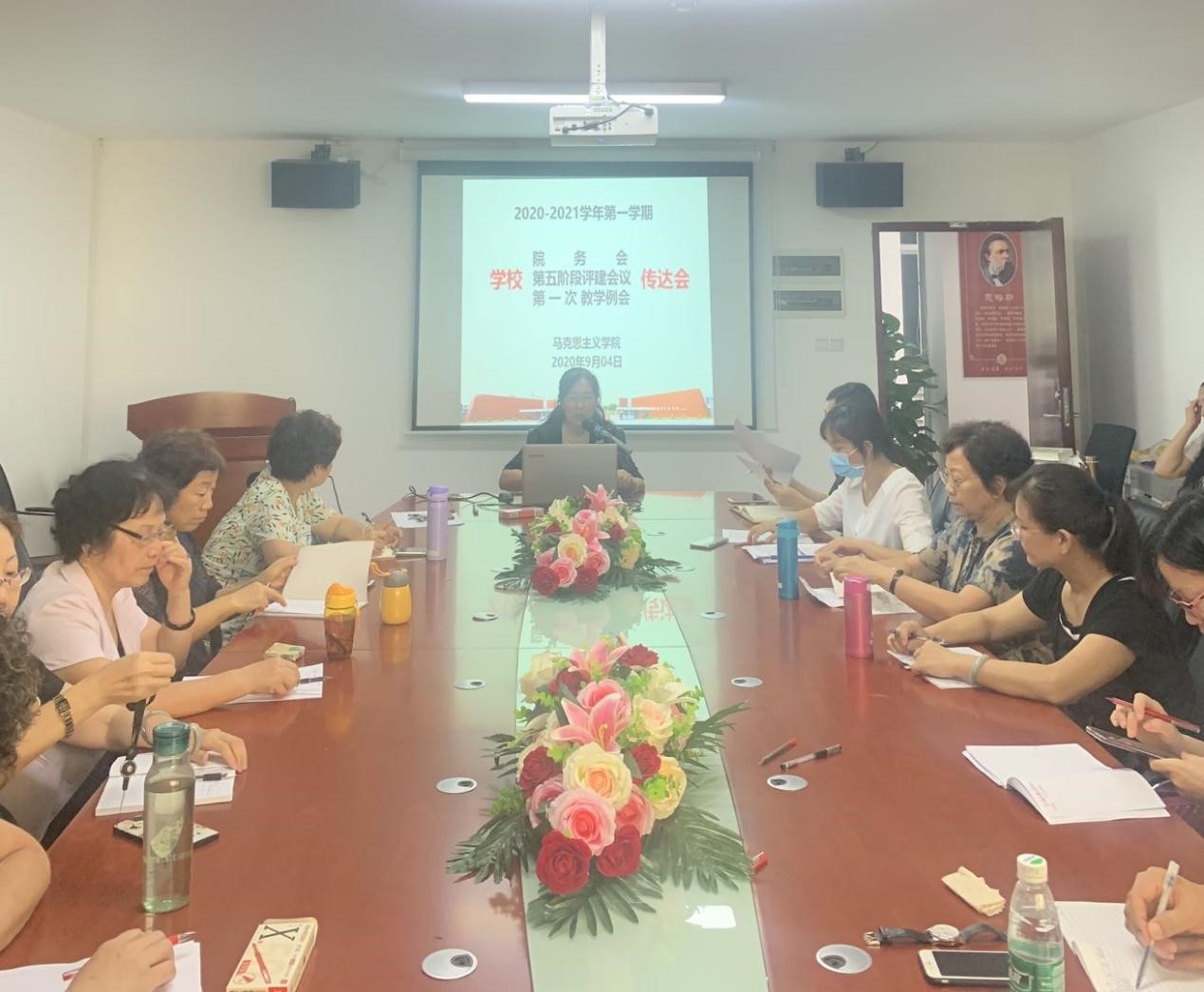 【本网讯】为了更好地传达学习学校会议精神,马克思主义学院近日在系部楼召开会议,传达学校院务会、第五阶段评建会议及第一次教学例会的会议精神。会议由马院院长张辉教授主持,马院全体教师参加会议。