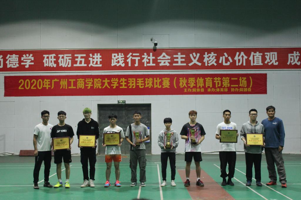 获得男双前五名的是:外语系何泽铭、潘豪霆;经贸系江正茂、徐炜佳;经贸系刘炫伟、郭承鑫;美术系余能燊、梁耀权;经贸系郭沿希、高学明。