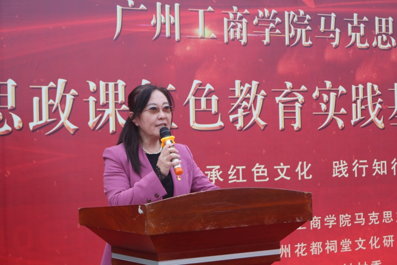 随后,花都区政协科教文卫与文史学习委《花都文史》执行主编、广州花都祠堂研究会会长邓静宜向在场的领导嘉宾及大学生讲述了义山村钟氏宗祠的红色故事,认为义山村钟氏宗祠作为红色教育基地宣传革命先辈事迹、开展红色教育十分有意义。她还衷心祝愿义山村的建设越来越好,期待beat365在线体育官网登录入口马克思主义学院充分利用红色资源,开展多元化的教育活动,培养更多又红又专的人才。