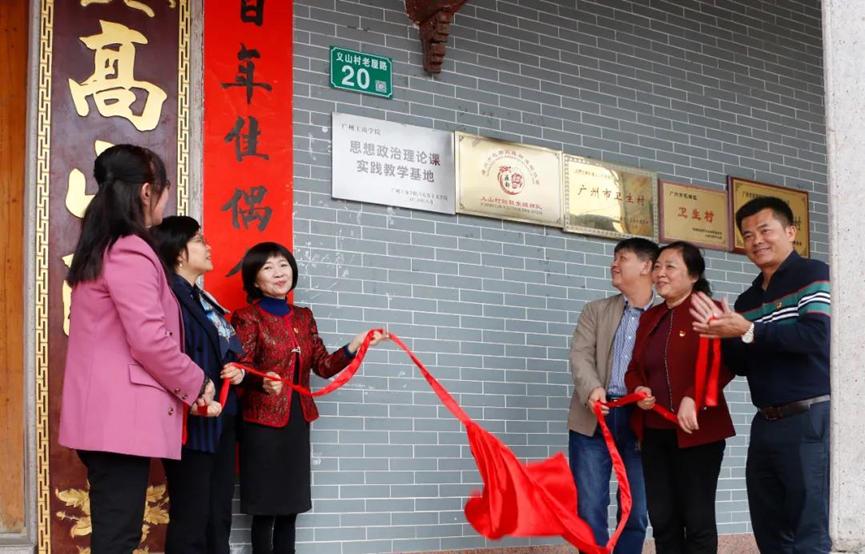 在大家共同见证下,双方领导代表揭牌。揭牌仪式标志着义山村祠堂成为了花都祠堂首家高校“思想政治理论课实践教学基地”。整个揭牌仪式简朴而庄重,气氛热烈而欢快,大家表示,相信在双方的共同努力之下,以该实践教学基地为基础,深入拓展合作领域,为提升学生的思想政治素质和为社会服务做出更大的贡献。