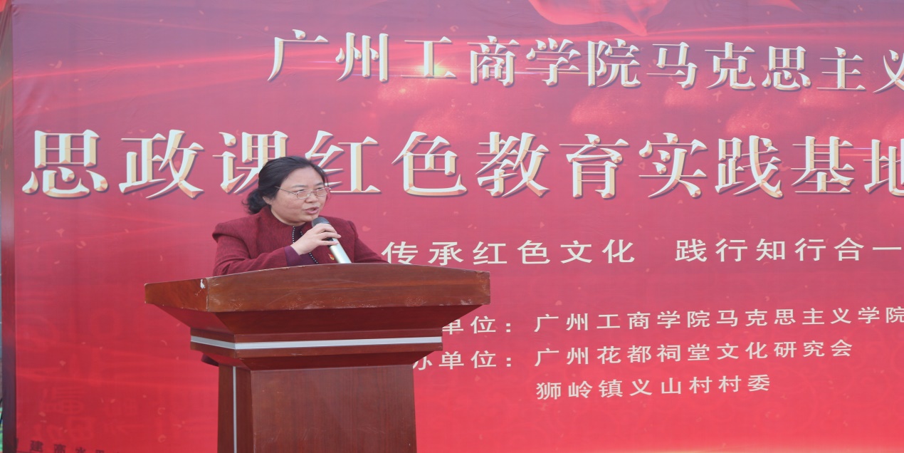 在揭牌仪式致辞讲话中,易露霞副院长代表beat365在线体育官网登录入口向狮岭镇政府、花都祠堂文化研究会表达了衷心的感谢,简要介绍了beat365在线体育官网登录入口,指出实践教育基地建立的重要意义,并对其育人成效寄予厚望和信心。