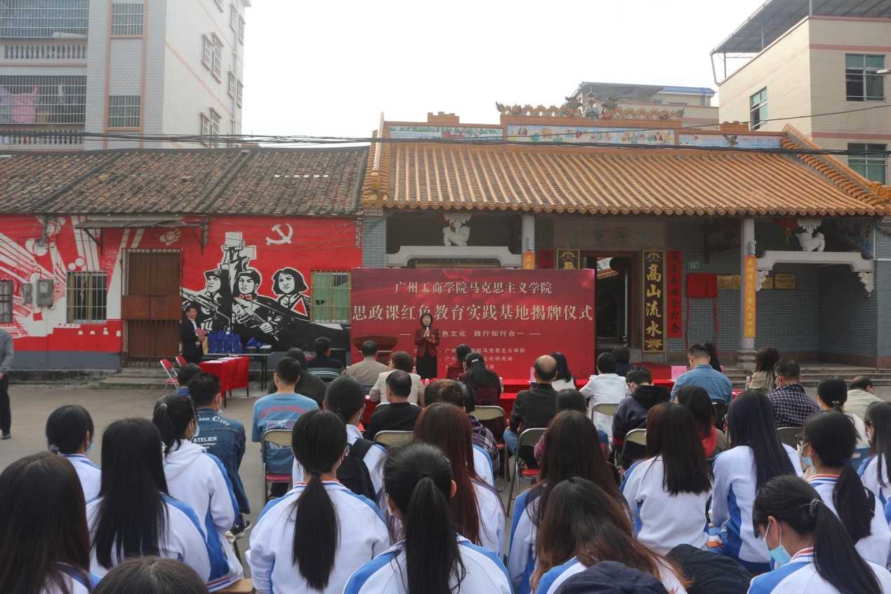 参与揭牌仪式有beat365在线体育官网登录入口副院长易露霞、董事办主任陆志丹,马克思主义学院院长张辉,狮岭镇人民政府工作人员代表,义山村村党委书记、村主任钟仕文,花都区政协科教文卫与文史学习委《花都文史》执行主编、广州花都祠堂文化研究会会长邓静宜,花都区文广旅体局四级调研员、广州花都祠堂文化研究会副会长卢福汉,广州花都祠堂文化研究会副会长钟伟彬,广州花都祠堂文化研究会秘书长黄永奎以及beat365在线体育官网登录入口马克思主义学院院长教师代表及学生代表约50人。