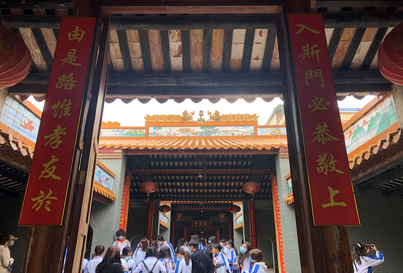 最后,广州花都祠堂文化研究会副会长钟伟彬带领领导嘉宾及学生参观祠堂、党史馆、皮具博物馆。在整个参观学习的过程中,师生代表们为祠堂建筑的精美奇特、深厚内蕴及党史馆、皮具博物馆的丰富历史物件赞叹不已。