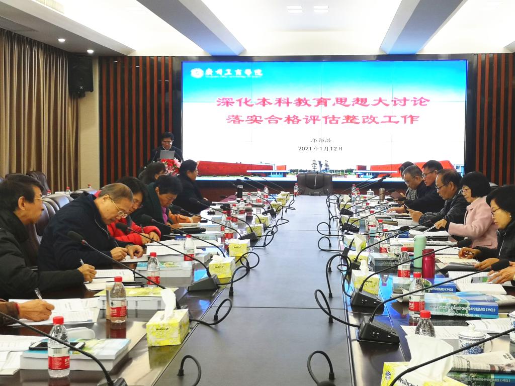 校长邝邦洪作总结发言。他强调了本次深化新时代本科教育思想大讨论的重要意义,并就如何开展好本次大讨论活动提出了五点要求:一是要坚持“学习”和“实干”相结合。通过学习提高认识,把大讨论上升到更好地落实国家、人民、历史赋予我们的使命和责任的高度来认识看待。要始终把坚持社会主义办学方向、坚持立德树人根本任务摆在首要位置,进一步坚定建设特色鲜明的高水平应用型民办本科院校的信心和决心;二是要坚持“求道”和“研术”相结合。在大讨论过程中,既要研讨应用型本科院校教师队伍建设、师资培养培训、专业建设与改革、人才培养目标、教学体系与模式、体制机制改革等影响大学育人高度的因素,也要研讨质量文化、师德师风、教风学风、师生对学校的认同度等影响大学育人温度的要素,要努力实现育人高度与育人温度的相互统一;三是要坚持“请进来”和“走出去”相结合。邀请教育领域的专家学者、国内著名高校的领导做辅导报告等;到国内一流大学、各类行业领先企业取取经,看看人家是怎么想的、怎么做的。只有眼界宽了,交流广了,思想认识才有可能变得深刻;四是要坚持“广泛性”和“集体意志”相结合。通过“研讨—归纳—总结”这样一个过程,使分散的意见和建议凝练上升为集体意志,形成新时代广工商育人工作的“共同价值观”,凝聚为全校本科教学工作合格评估整改的驱动力,进而指引每一个个体投入到整改工作中,这样才能够实现大讨论的目的;五是要坚持理念和实践相结合。各单位坚持问题导向,采取问题式研讨法,有的放矢地展开学习讨论,使深化新时代本科教育思想大讨论成为智慧碰撞的思想盛宴,成为解决问题的生动实践。