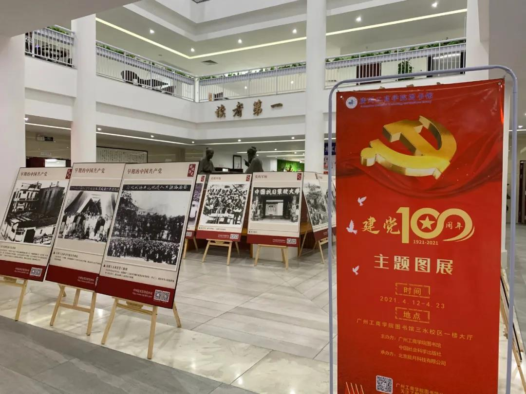 二、举办“回顾党史瞬间,致敬百岁年华”主题图展。4月12-23日,三水校区和花都校区图书馆一楼大厅举办“回顾党史瞬间,致敬百岁年华”为主题的建党100周年主题图片展览。图片展以党的重大事件为线索,以不同时期的典型事例、历史人物、精彩故事为主干,全景式回顾中国共产党的伟大历程和辉煌成就,激励广大师生不忘初心、牢记使命,以昂扬的精神和饱满的热情,迎接中国共产党成立100周年华诞。