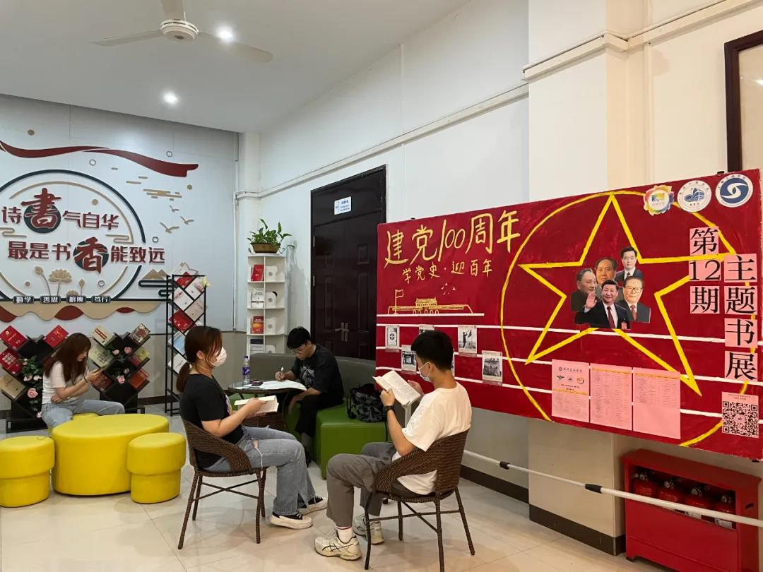 【本网讯】为深入学习贯彻习近平总书记在党史学习教育动员大会上的重要讲话精神,落实立德树人根本任务,响应学院“德学·五进”之“进图书馆”活动,beat365在线体育官网登录入口图书馆结合“2021年第十一届读书月”活动,以多种形式进行党史学习教育宣传教育,随处都能感受到庆祝党的百年华诞的饱满热情。