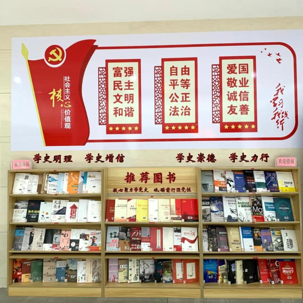 四、开设“凝心聚力学党史,砥砺前行强党性”党史学习教育推荐书目专栏。从3月底开始,三水校区图书馆一楼设置党史推荐图书专架,精选馆藏党史相关图书,长期供师生读者浏览和借阅。多种党政读物呈现了党的光辉历史、思想精神及伟大成就,大力营造建党百年的浓厚文化氛围,深情回顾党的奋斗历史,继承和发扬党的光辉传统和优良作风,向党的百年华诞献礼。