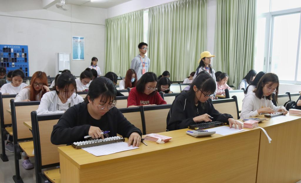 比赛现场,参赛选手争分夺秒、手法娴熟地细数手中的钞票;灵活地拨动算盘并精准地写出答案;运用熟练和高超的技法拨打计算器键盘……整个比赛现场只剩下数钞时的“唰唰”声、算珠互相撞击发出的清脆声以及敲击计算器时富有节奏感的声响,现场气氛激烈且紧张。