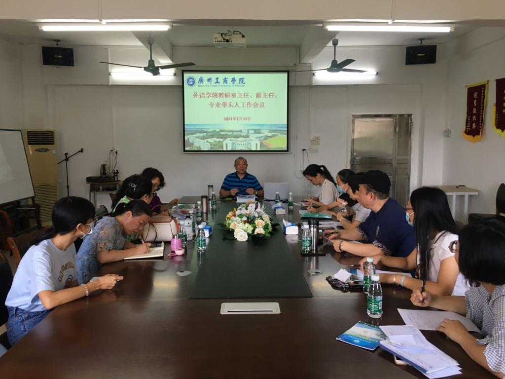【本网讯】7月13日下午,外语学院召开教研室主任、副主任、专业带头人工作会议。常务副院长习传进教授分析了当前新文科、大外语的特点、外语教学面对的挑战、以及教学改革的趋势,并结合我院的实际,与大家一起探讨了如何提高教学质量和提高办学层次。