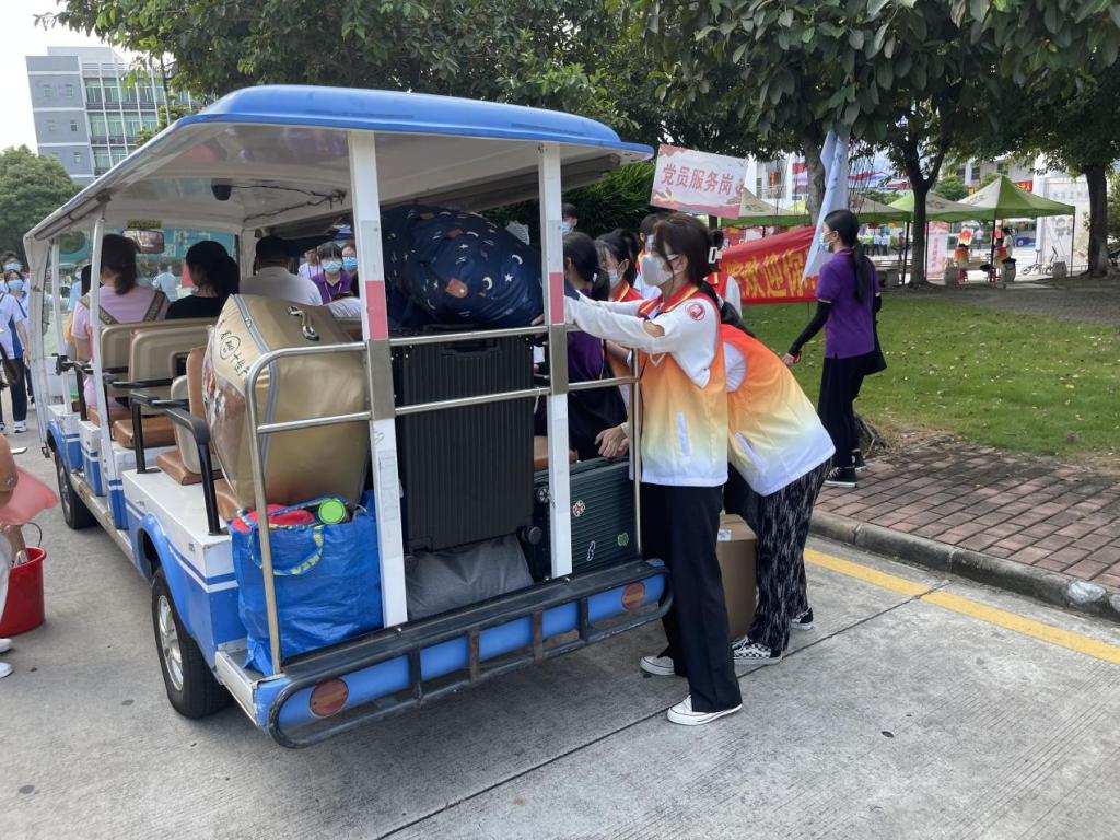 (学校党员志愿者协助入学新生搬运行李)