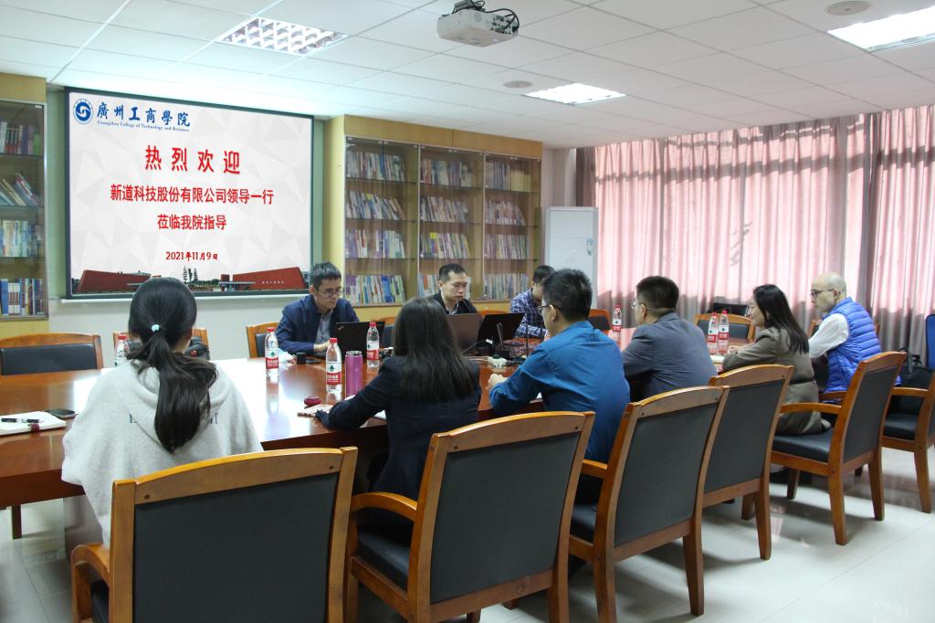【本网讯】为加强校企之间的合作交流,11月9日上午,新道科技股份有限公司和beat365在线体育官网登录入口商学院的校企合作交流会在商学院楼304会议室召开。新道科技股份有限公司(下文简称“新道科技”)华南区总经理黄堪敬、广东区副总经理曾祥伟等一行三人,以及商学院院长林波博士、张娜副院长、张晓英副院长、程振锋副院长、投资学教研室教师代表进行座谈交流。