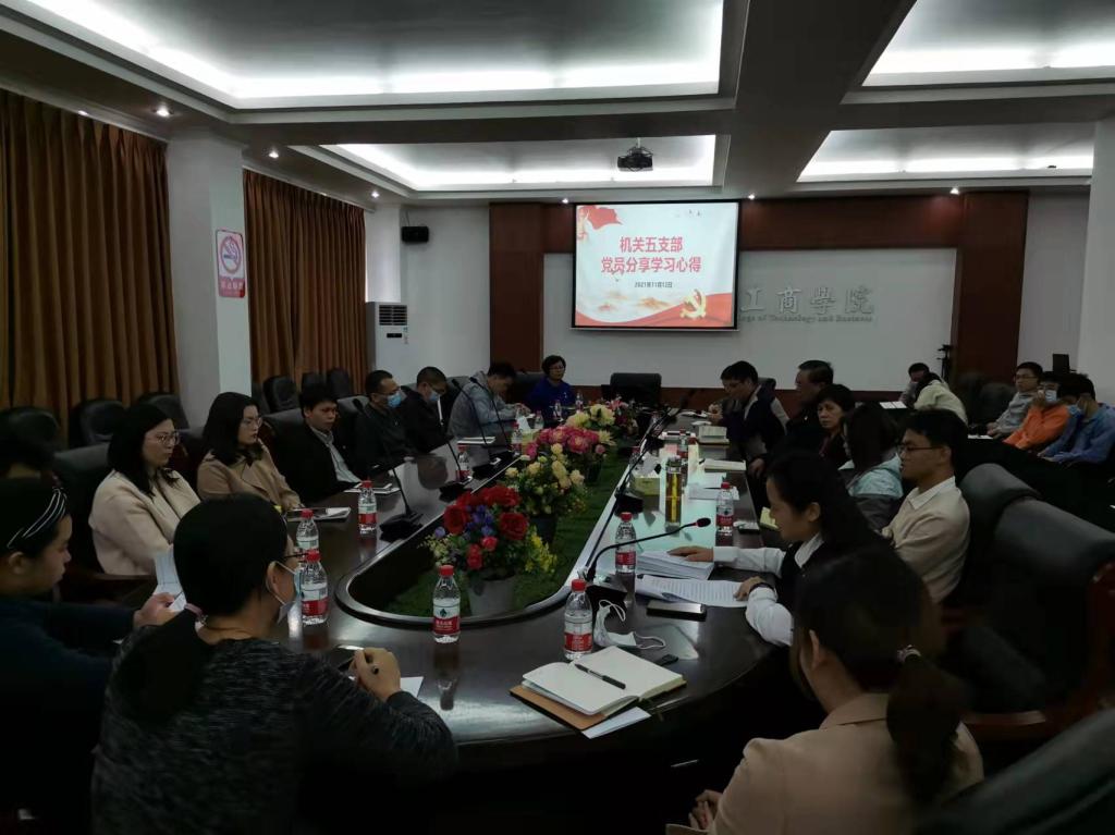 【本网讯】11月12日下午,机关五党支部在花都校区办公楼101会议室召开党史学习教育分享会。支部书记李丹艳主持。